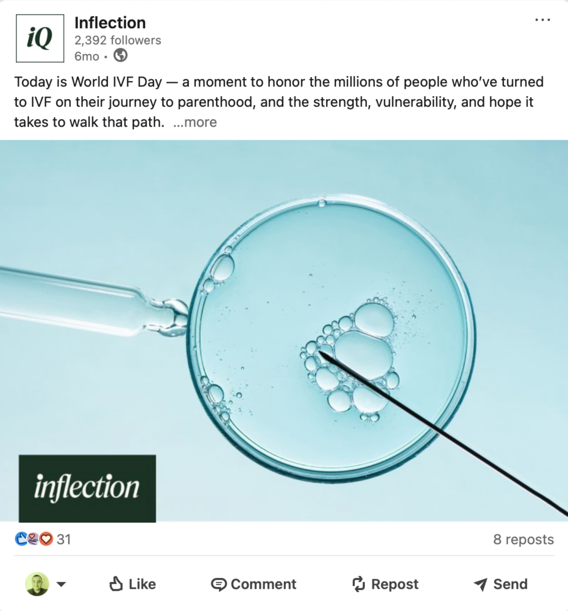 Branded social post design: a refined tag-style logo integration I developed for Inflection’s LinkedIn awareness content.