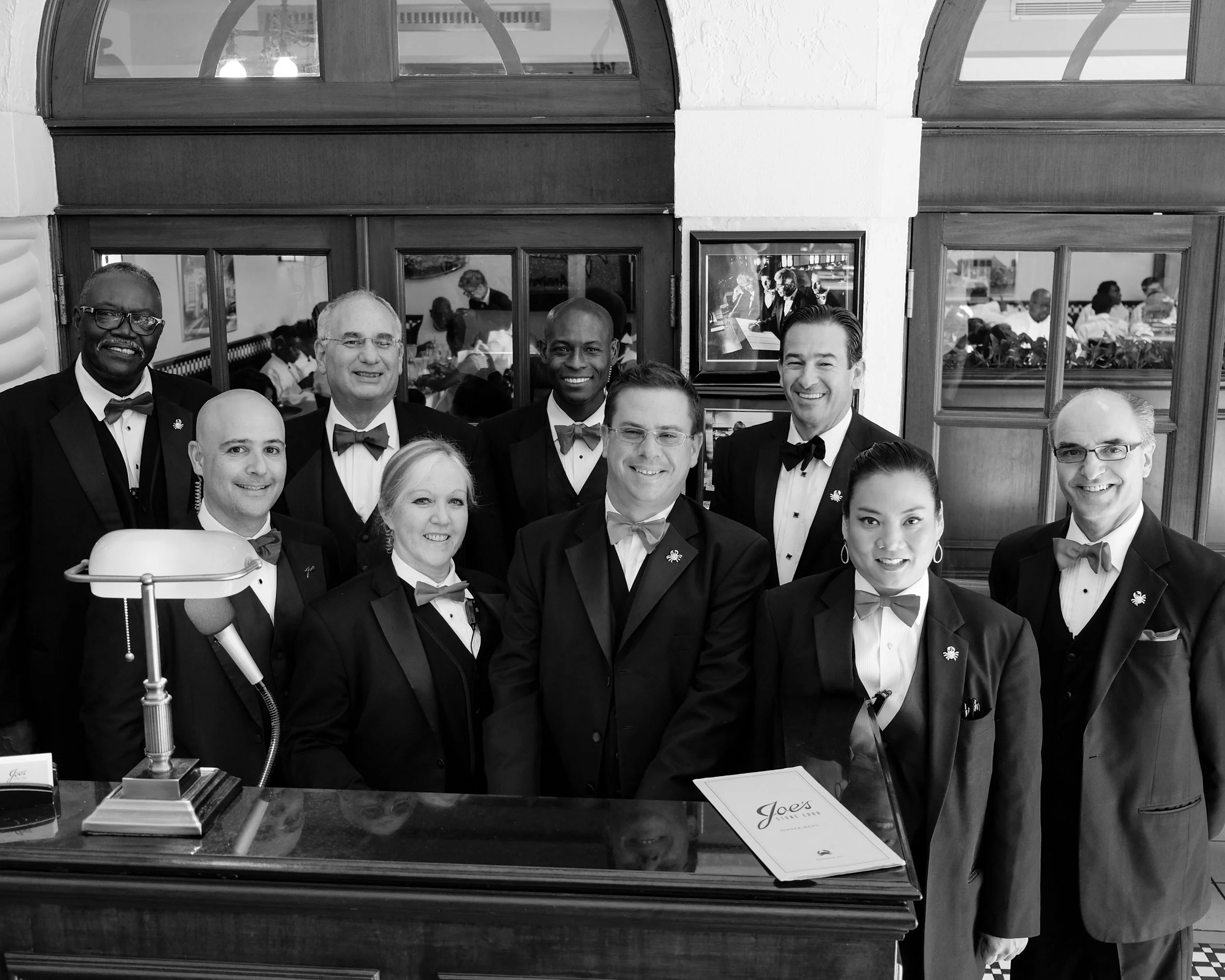 My photograph (below) of the wait staff captains was selected for permanent display at the entrance of Joe's Stone Crab, paired with a candid photograph of the captains taken by the legendary Helmut Newton during one of his visits, welcoming everyone to the restaurant.