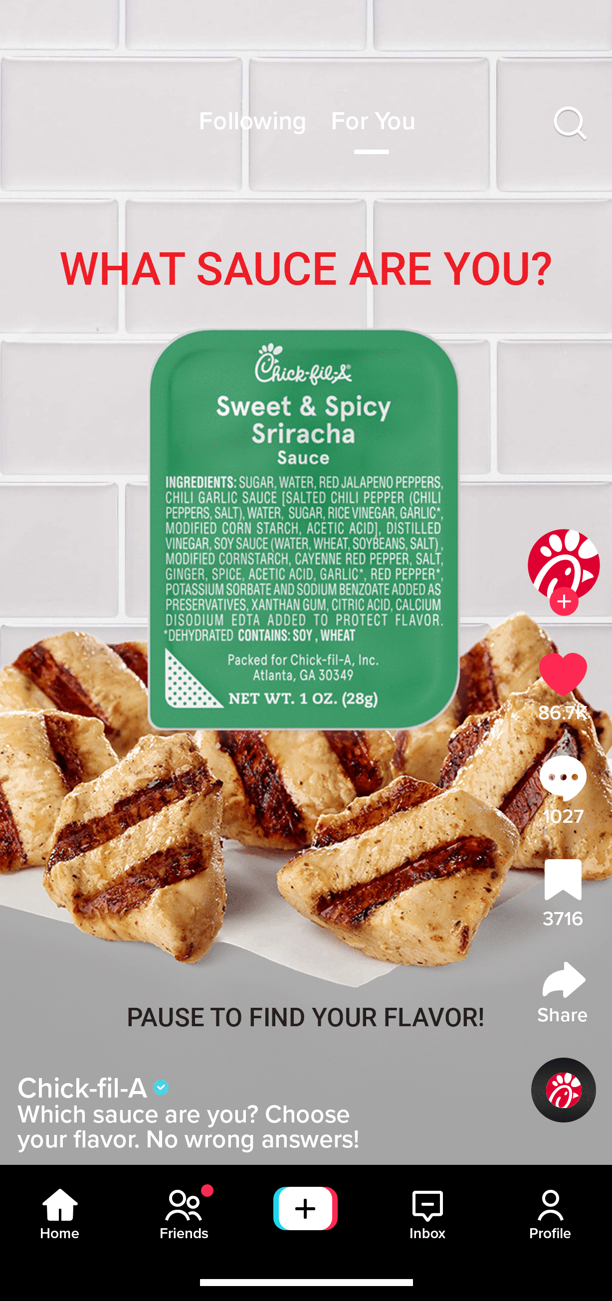“Pause” was intentionally chosen over “tap” because it aligns with TikTok’s interactive culture, where users often pause videos for quizzes and other interactive content. This clear call-to-action guides viewers to focus on the cycling sauces to reveal their flavor, boosting engagement while leveraging TikTok’s algorithm, which favors content that retains attention. The game-like approach taps into the platform’s interactive nature and rewards users with a unique flavor reveal if they participate.